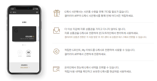 ✔ G캐시로 전환 후 온라인 활용 : 갤러리아 상품권을 G캐시로 전환하면 갤러리아몰뿐만 아니라 다양한 온라인 쇼핑몰에서도 편리하게 사용할 수 있습니다. 특히, 온라인 쇼핑을 자주 하거나 갤러리아몰에서 특정 상품을 구매하고자 하는 경우, 상품권을 G캐시로 전환해 활용하는 것이 좋습니다.