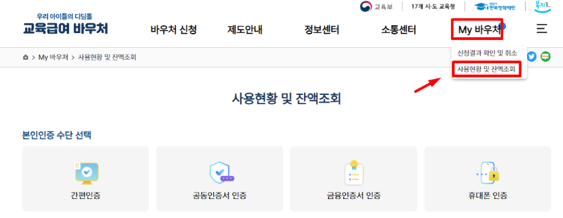 교육급여 바우처 잔액조회